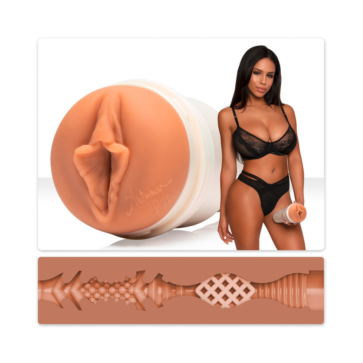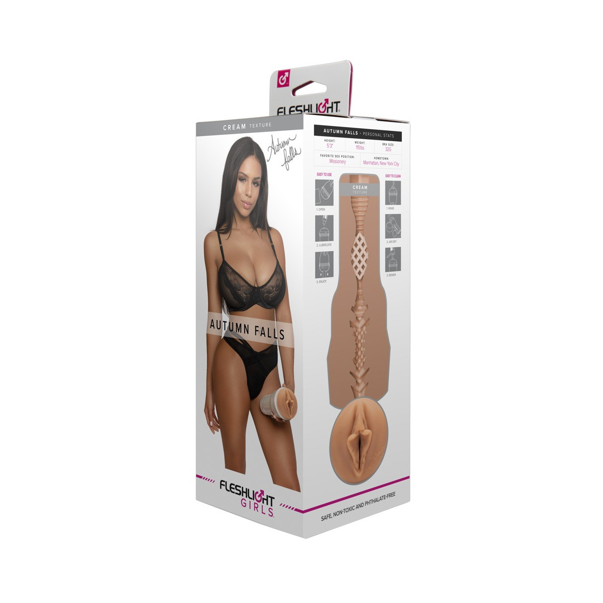 Masturbatore in crema Grippy Autumn Falls di Fleshlight in discreto look torcia con originale apertura della vagina modellata dalla star erotica Autumn Falls. E anche l'interno molto diversificato con diversi diametri si avvicina molto alla vagina stretta di Autumn e fornisce un massaggio intenso ed efficace per l'orgasmo durante l'handjob. Il manicotto interno fatto di materiale super-morbido come la pelle ha l'autografo di Autumn accanto all'apertura e può essere facilmente rimosso dal masturbatore per la pulizia.
