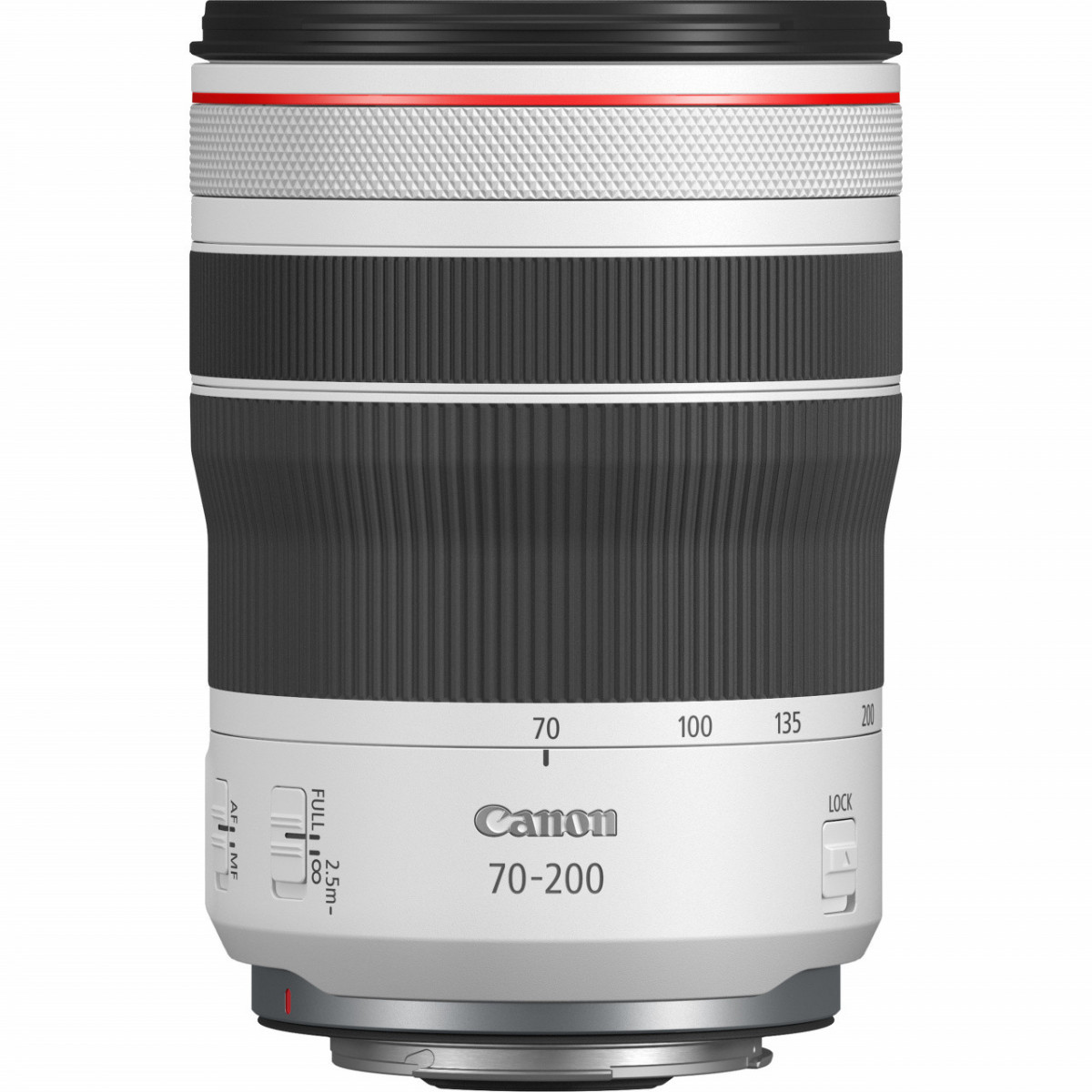 Canon Obiettivo RF 70-200mm F4L IS USM. Componente per: MILC/SRL, Struttura lente: 16/11, Tipo di lente: Teleobiettivo zoom. Marche compatibili: Canon, Ingrandimento massimo: 0,28x. Colore del prodotto: Bianco. Diametro: 8,35 cm, Dimensione filtro: 7,7 cm, Lunghezza: 1193 mm