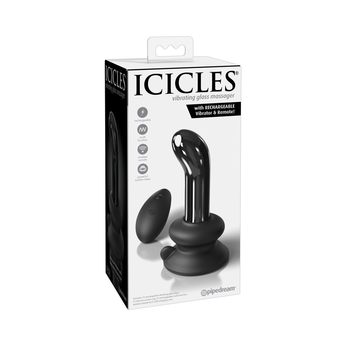 Vibratore in vetro ricaricabile con base di aspirazione in silicone rimovibile. Con la sua curvatura di 29°, raggiunge facilmente il tuo punto P anale o il punto G vaginale per una stimolazione mirata. 10 modalità di vibrazione possono essere facilmente controllate con il telecomando ricaricabile - anche dal tuo partner. Il vibratore di vetro è impermeabile e può essere temperato in acqua calda o fredda per momenti di piacere extra eccitanti. Il vetro è assolutamente fatto a mano senza cuciture ed è caratterizzato dalle sue proprietà antiallergiche e dalla facilità di pulizia. Cavo di ricarica USB incluso.