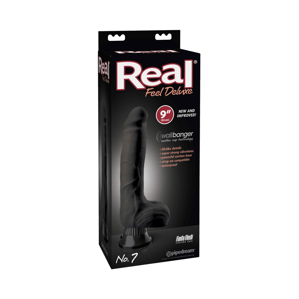 Real Feel No7 - Vibratore Realistico con Testicoli e Ventosa, Nero, Richiede Batterie