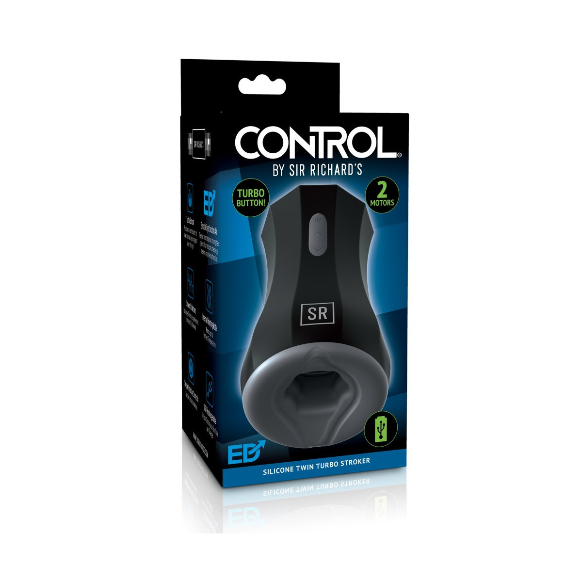 Sir Richard's Control SRC Silicone Twin Turbo Stroke - Masturbatore con Vibrazione, 10 MOD, Impermeabile, Ricaricabile