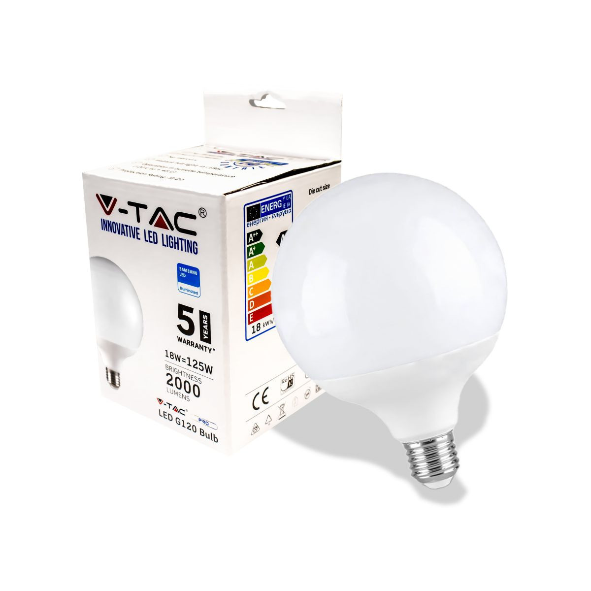 LED Bulb - Samsung Chip 18W E27 G120 Plastic 4000K 111 lm/w