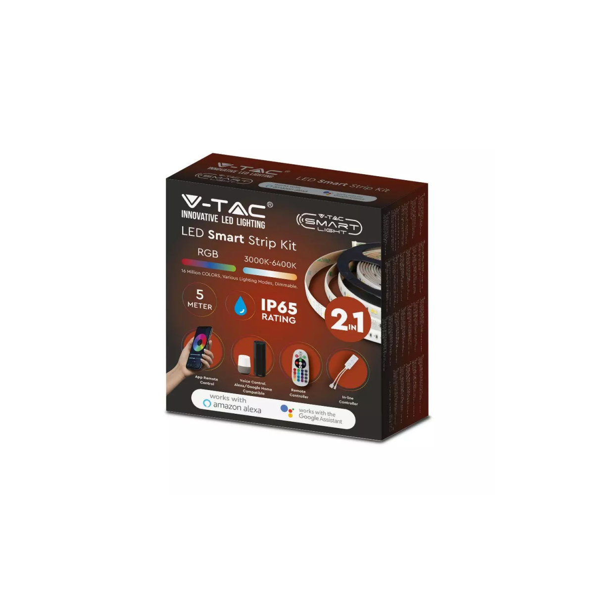 V-TAC Kit per Strip LED SMD5050 4W/m 54LED/m RGB e 3in1 5 metri 12V Con Controllo Wifi Compatibile con Google Assistent e Amazon