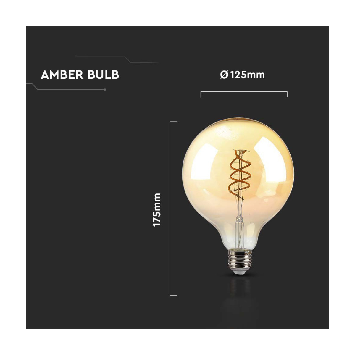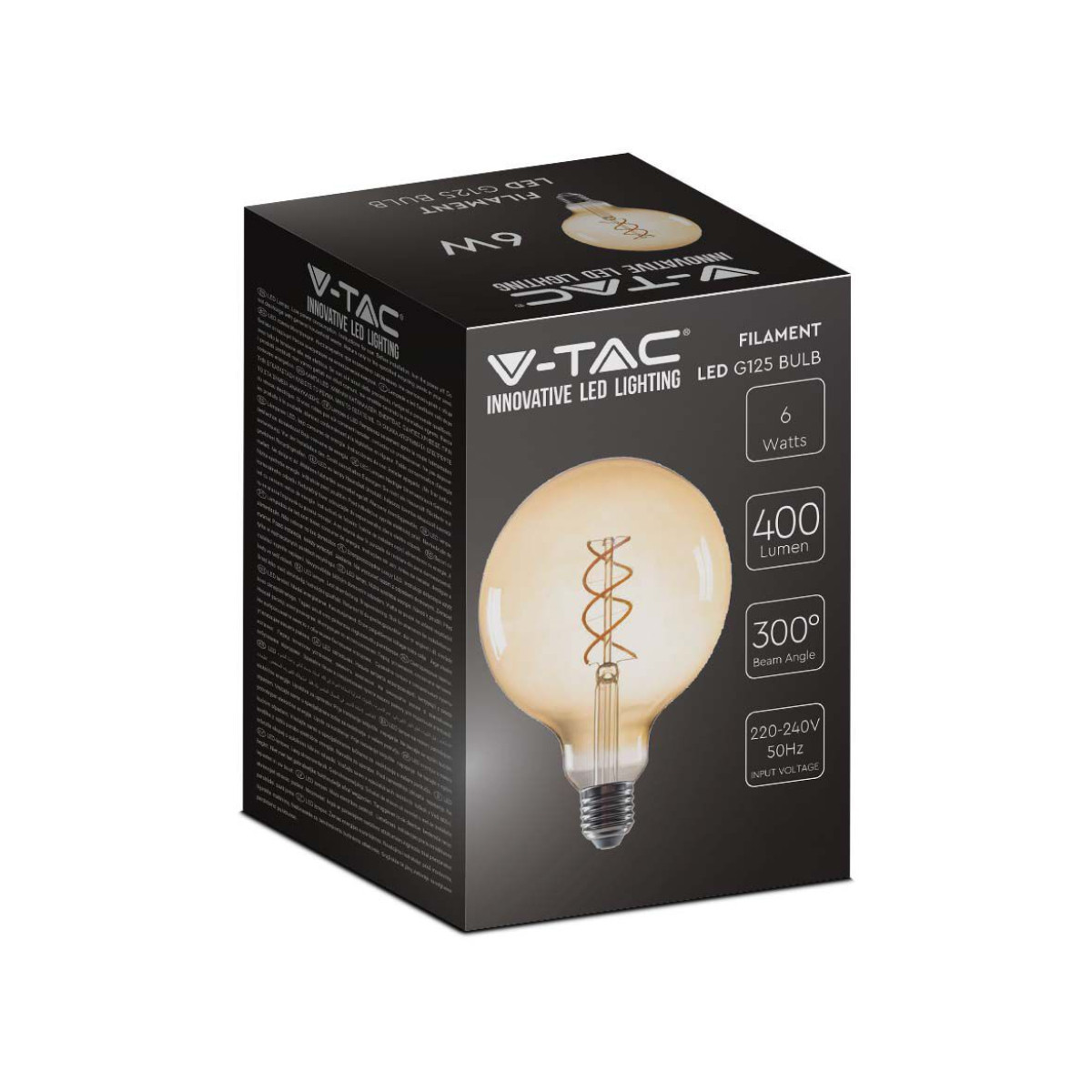 V-TAC Lampadina LED E27 6W G125 Filamento Ambrato a doppio Spirale 1800K