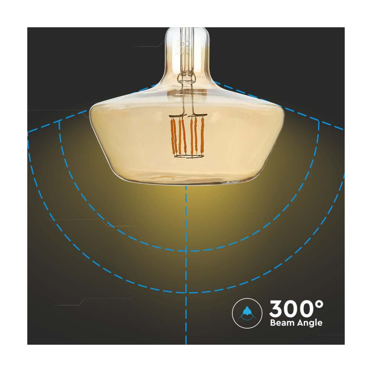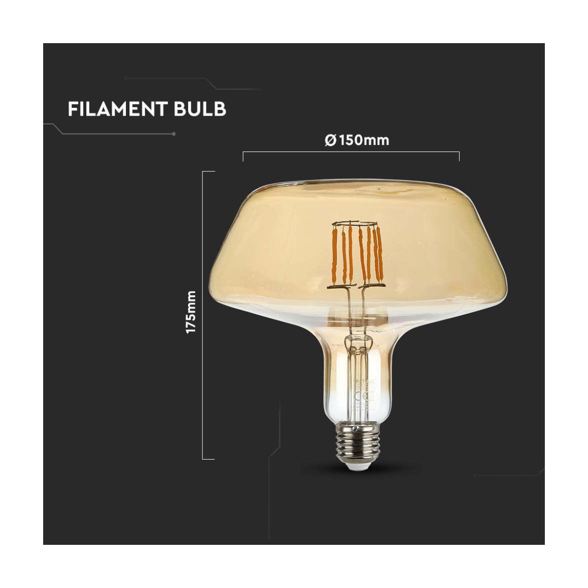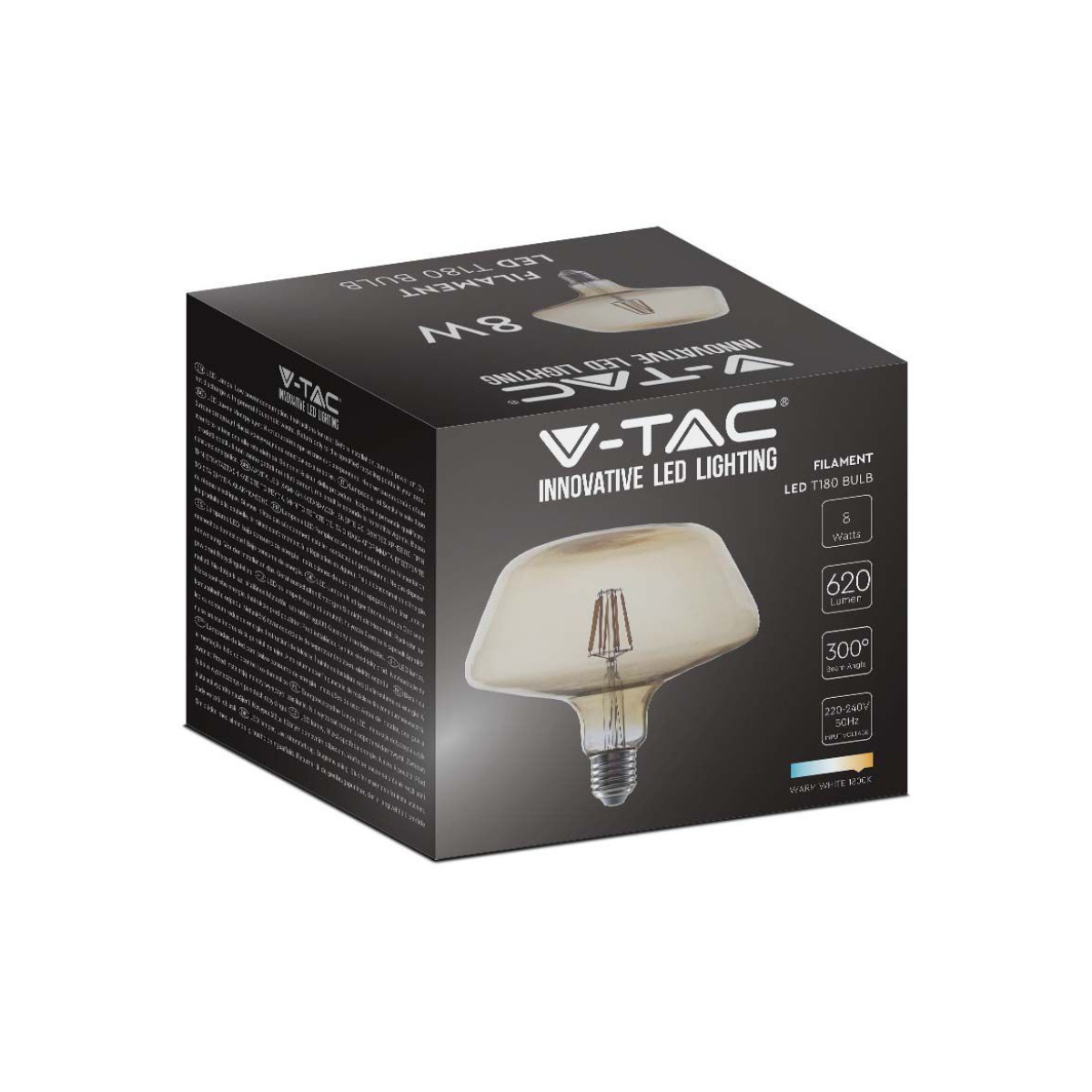 V-TAC Lampadina LED E27 8W T180 Filamento Ambrata 1800K