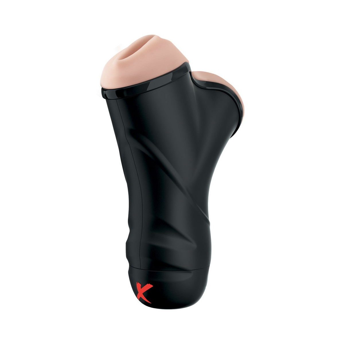 Pratico masturbatore con 2 aperture per il piacere della vita: bocca e vagina. Entrambi i canali del piacere sono realizzati in materiale Fanta Flesh simile alla pelle e all'interno con struttura di stimolazione per un'esperienza di piacere quasi realistica. Con la vibrazione attivata, l'esperienza in solitaria diventa ancora più avventurosa! Inoltre, l'apertura per il vuoto fornisce un vuoto emozionante e, comprimendo il masturbatore, si possono creare sensazioni di aspirazione realistiche. La parte inferiore del masturbatore può essere svitata per una facile pulizia. Compresi 3 anelli per il pene. (Si prega di ordinare le batterie separatamente: 2 x AAA).