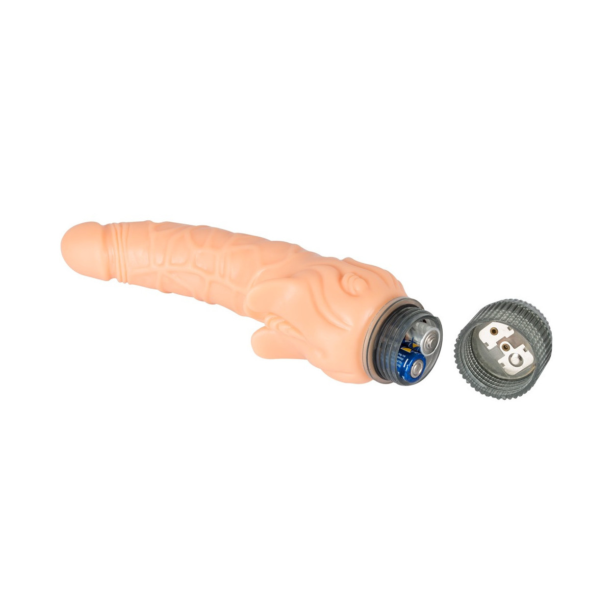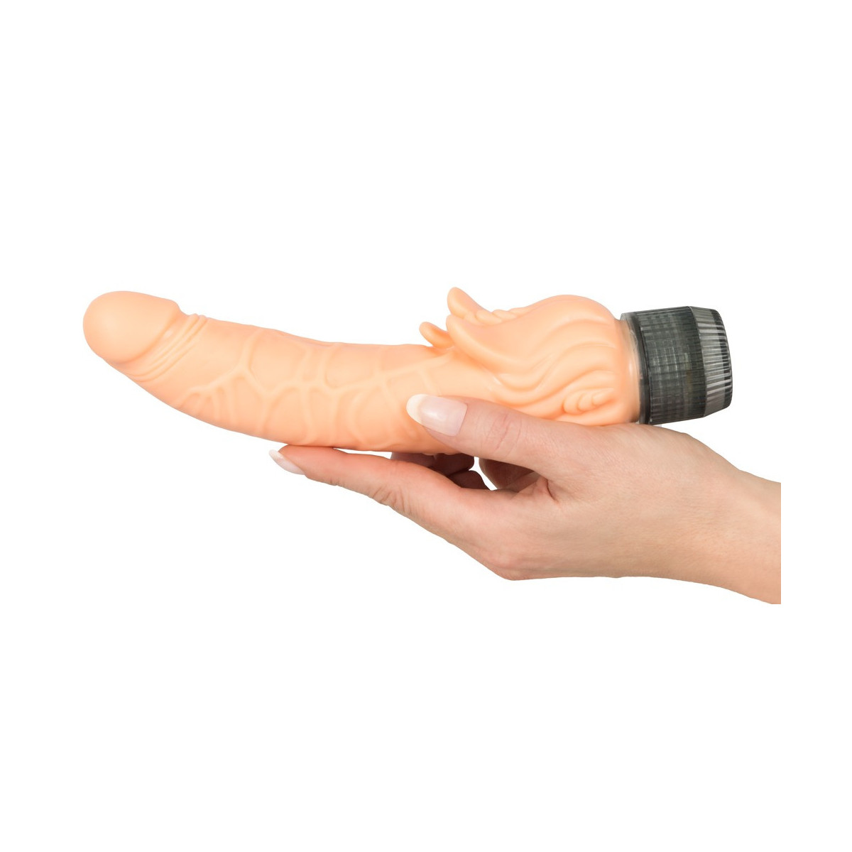 Vibratore a forma di pene naturale. Con lingue solleticanti sul gambo! Molto flessibile. Color pelle e con vibrazione a regolazione continua. Ca. 21 cm di lunghezza, Ø 3,5-5,5 cm. Materiale: PVC, ABS.