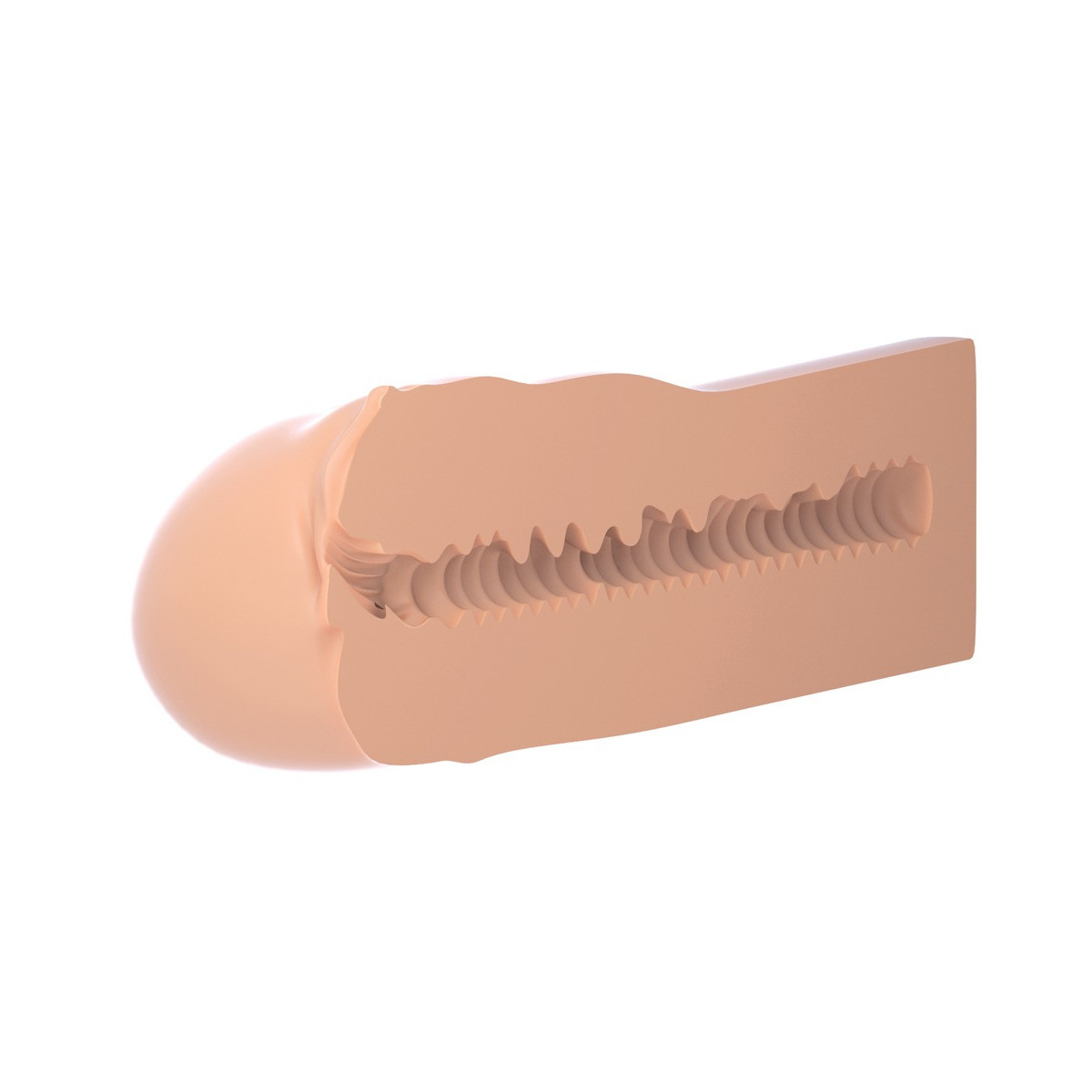 Pratico masturbatore compatto con apertura della vagina realistica e canale del piacere sensualmente scanalato. Realizzato in materiale simile alla pelle di Fanta Flesh.
