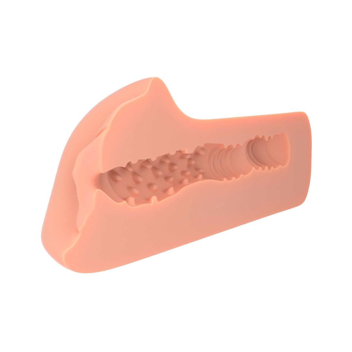 Pratico masturbatore in look vagina realistico. Il tunnel del piacere fatto di materiale simile alla pelle Fanta Flesh è dotato di nodi e scanalature di stimolazione distintamente strutturati all'interno, che forniscono un massaggio intenso ed efficace per l'orgasmo durante l'handjob. La pressione può essere facilmente variata per una deliziosa sensazione di presa. Inoltre, il design del tunnel chiuso fornisce un eccitante effetto di aspirazione.