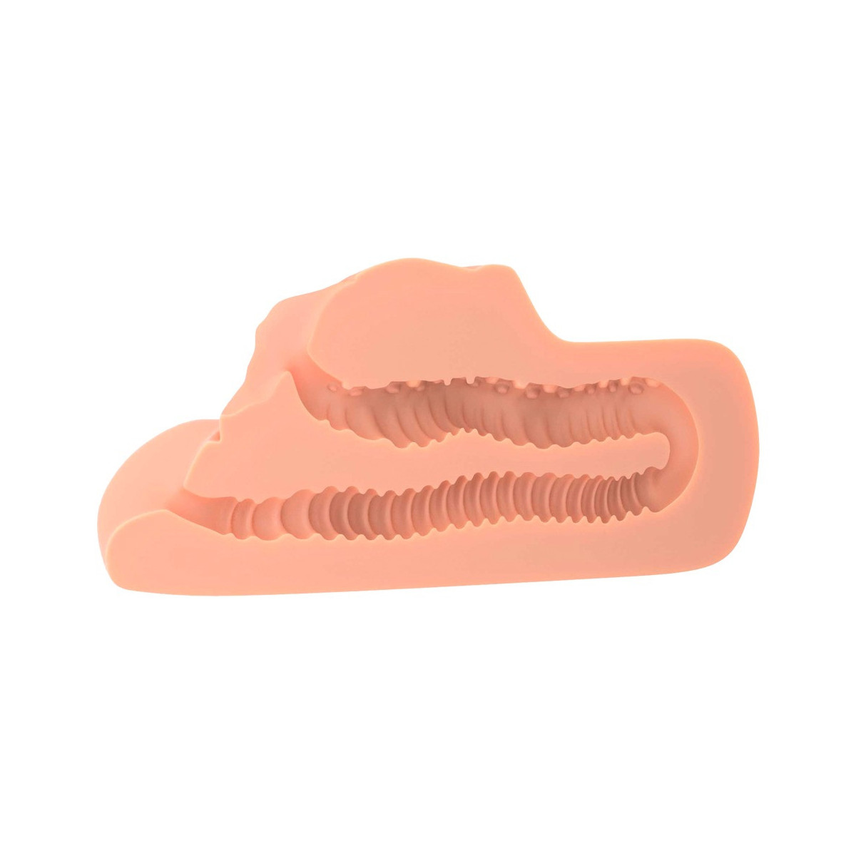 Pratico masturbatore in look vagina/ano realistico. I tunnel del piacere fatti di materiale simile alla pelle Fanta Flesh sono dotati di scanalature di stimolazione distintamente strutturate all'interno, che assicurano un massaggio intenso ed efficace per l'orgasmo durante l'handjob. La pressione può essere facilmente variata per una deliziosa sensazione di presa. Inoltre, il design del tunnel chiuso fornisce un eccitante effetto di aspirazione. I due tunnel del piacere sono collegati per una facile pulizia.