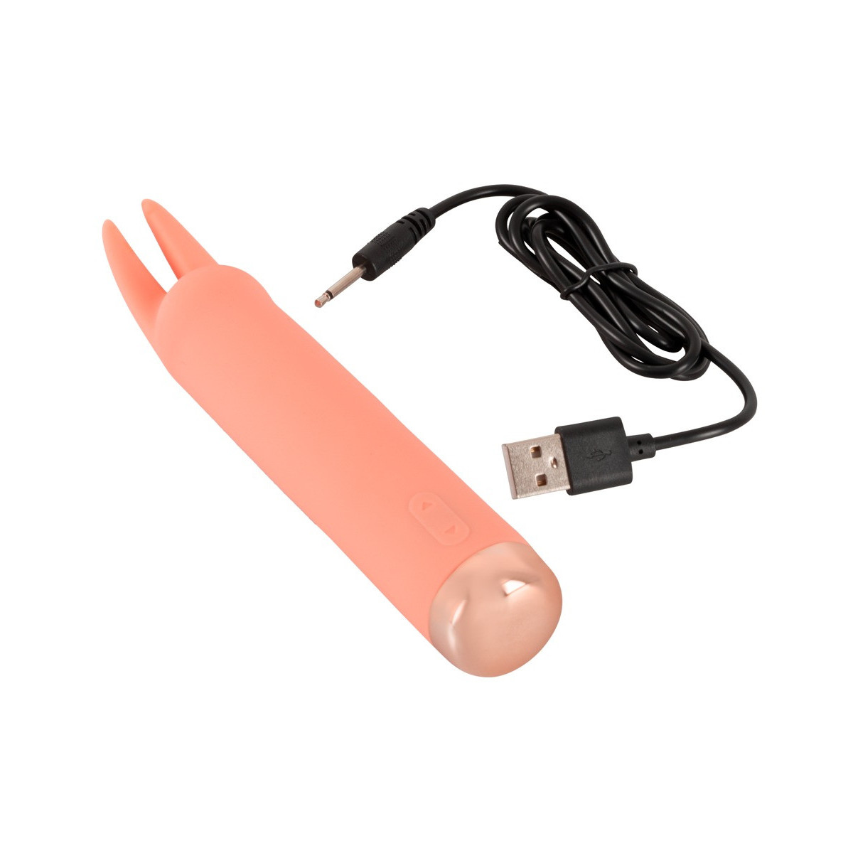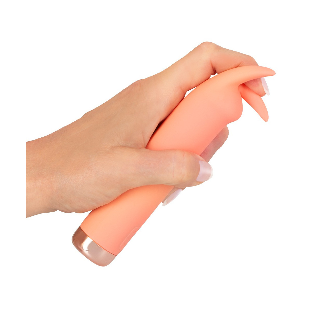 Bellissimo mini vibratore trickle pastello di peachy! con vibro-orecchie flessibili sulla parte superiore - entra in ogni tasca! 10 modalità di vibrazione forniscono variazioni di gioco vaginale e anale, così come la stimolazione dei punti di piacere esterni per un divertimento vario e può essere comodamente controllato su e giù al tocco di un pulsante. Il materiale in silicone di alta qualità con una consistenza morbida al tatto fornisce una sensazione di pelle molto piacevole durante il gioco e le coccole. Ricaricabile - cavo di ricarica USB incluso.