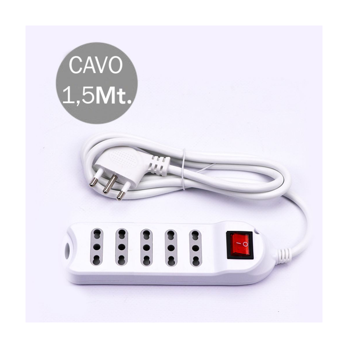 Multipresa 5 Posti Con interruttore Luminoso 10/16A Bipasso Con attacco a parete