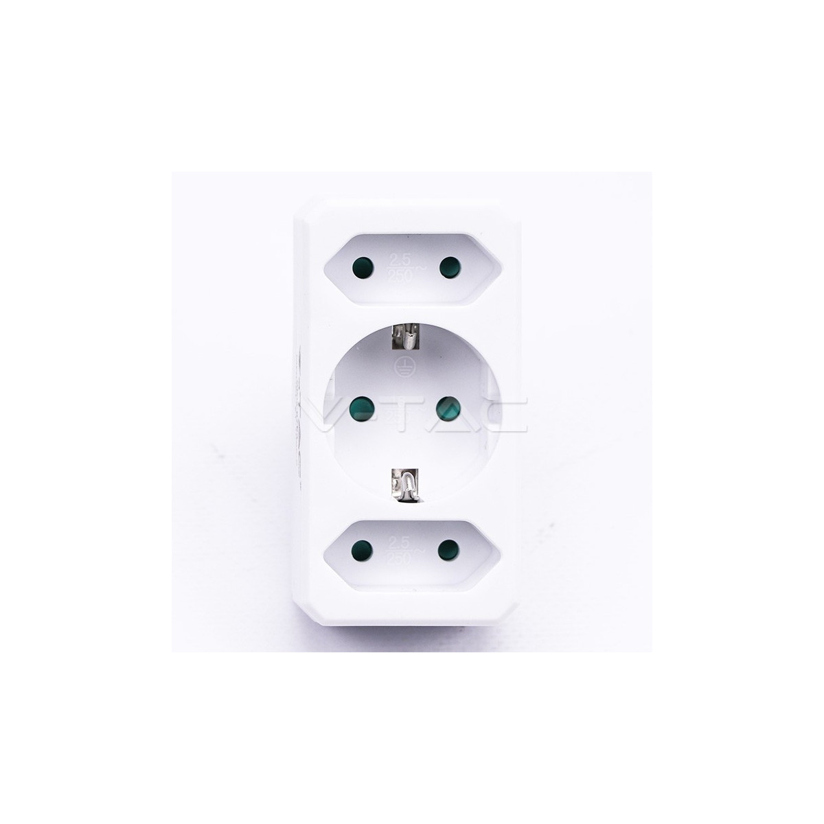 V-TAC VT-1005. Tipo di connettore per spina: Tipo F, Tipo di connettore per presa: Tipo C (spina europea) + Tipo F, Tensione di ingresso AC: 250 V. Larghezza: 48 mm, Profondità: 75,3 mm, Altezza: 95,1 mm