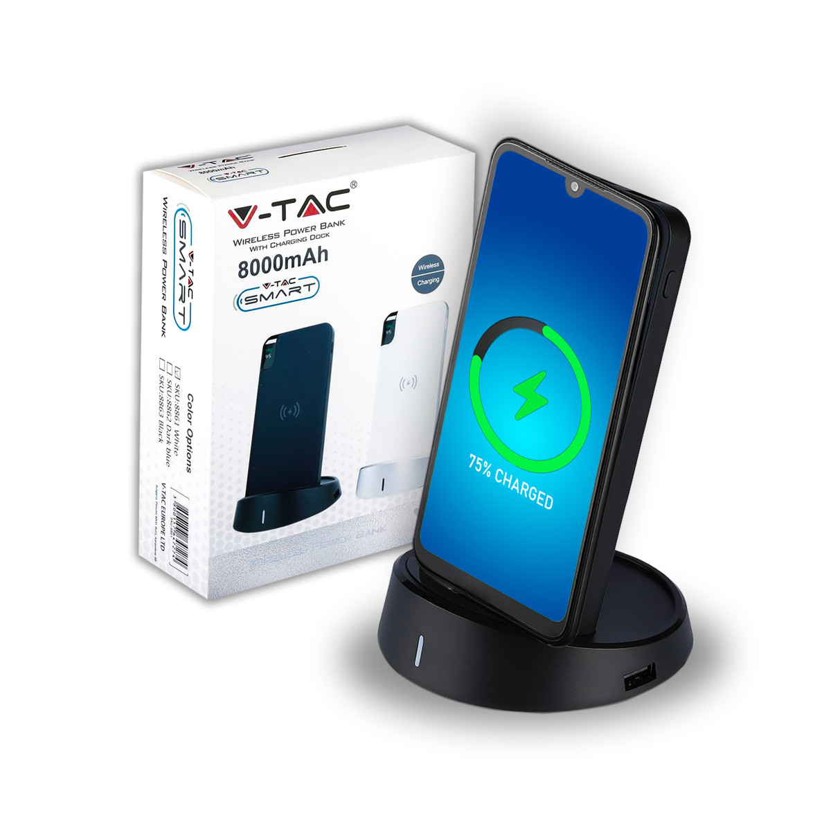 10K Mah Power Bank With Wireless Charger & Display Black Lamp Stand Dark Blue