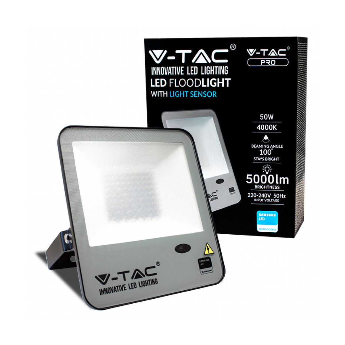 50W LED Sensor Day Light Floodlight SAMSUNG CHIP 100LM/W Black Body 4000K