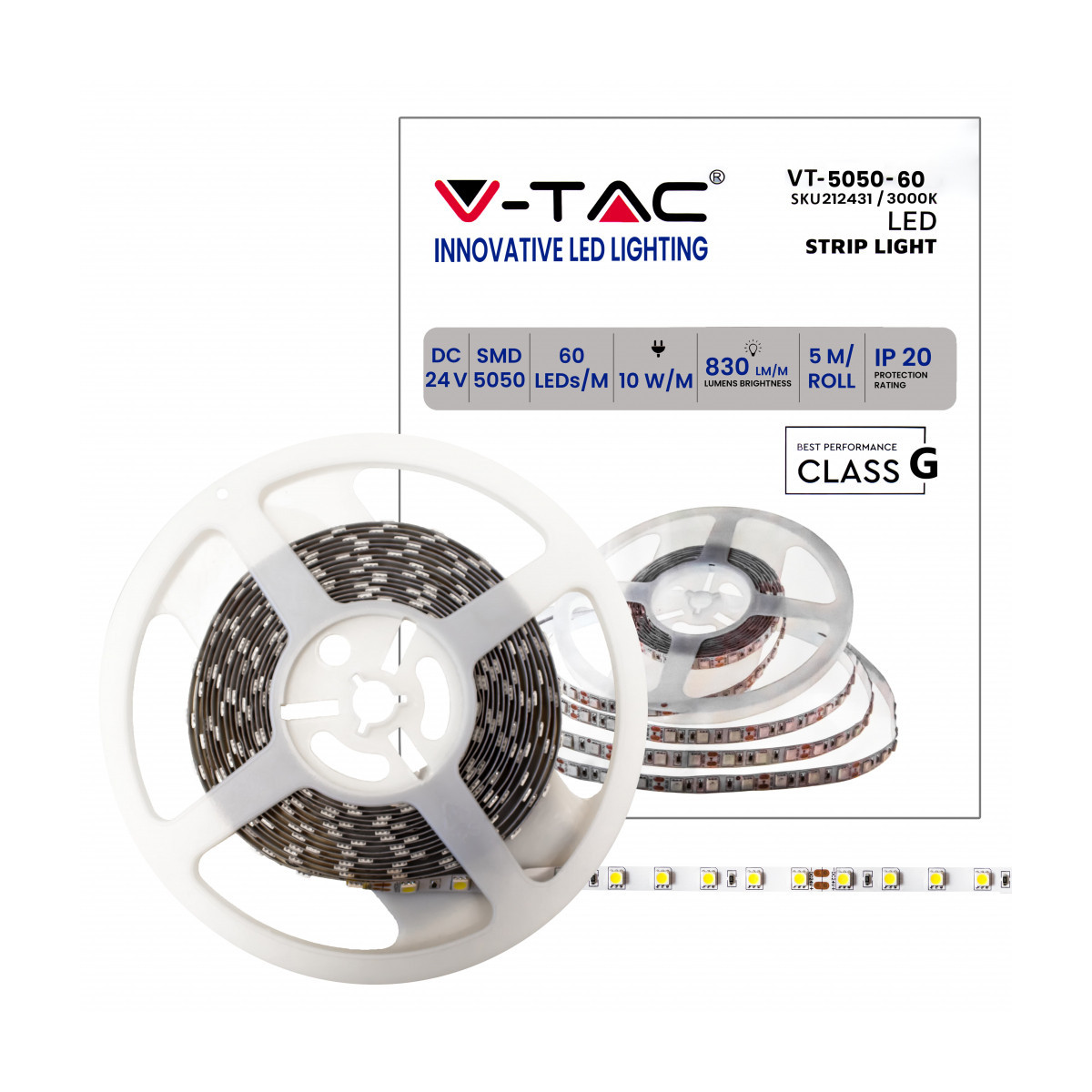LED Strip SMD5050 - 60 LEDs 24V 3000K IP20 [ packaging di 5 pezzi ]