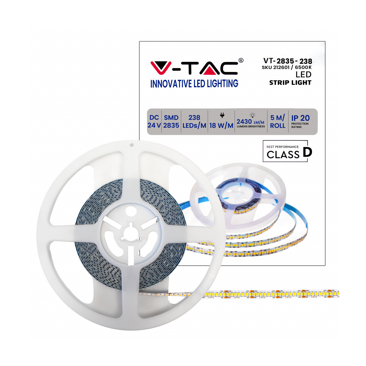 LED Strip SMD2835 - 238 LEDs 24V IP20 6500K 135LM/W [ packaging di 5 pezzi ]