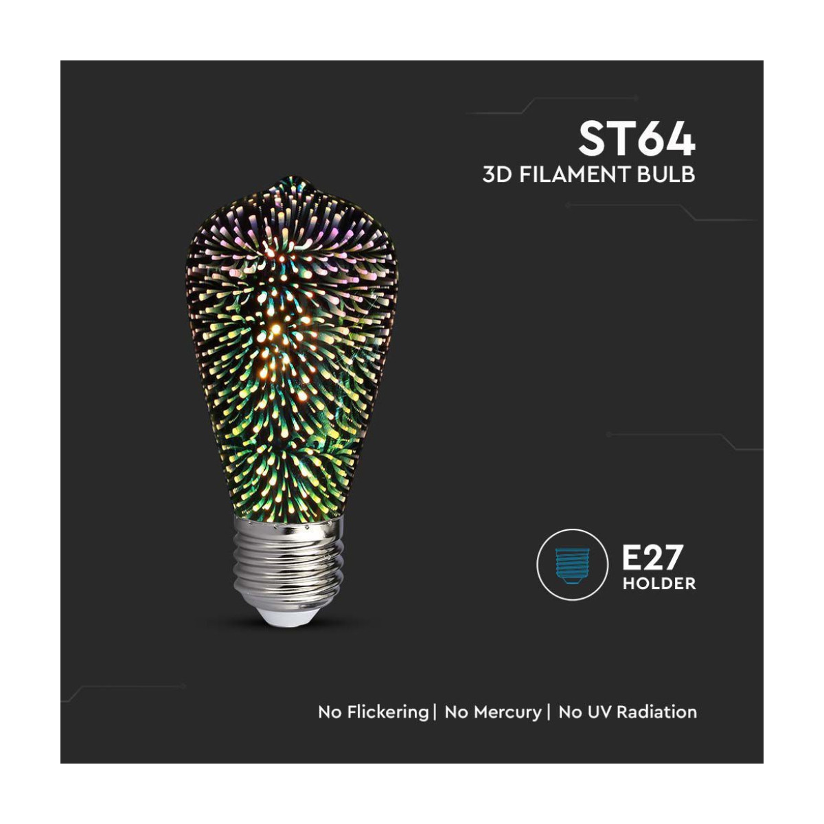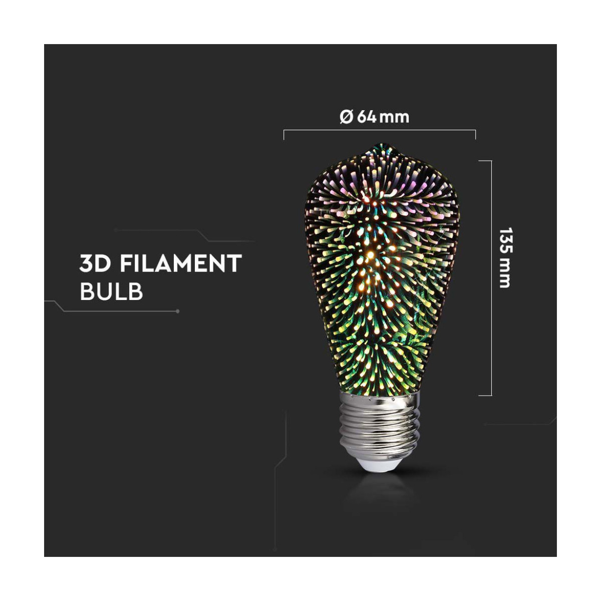 V-TAC Lampadina LED E27 5W ST64 Filamento 3D 3000K