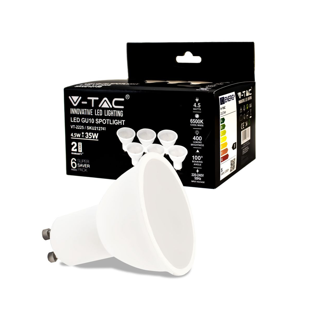 4.5W SMD WHITE PLASTIC SPOTLIGHT-MILKY COVER 6500K GU10 100`D 6PCS/PACK