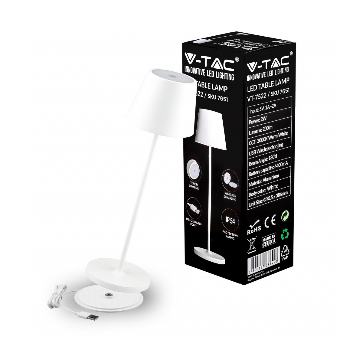 Led 2W Table Lamp(4400Ma Battery) 3000K Ip54 White Body
