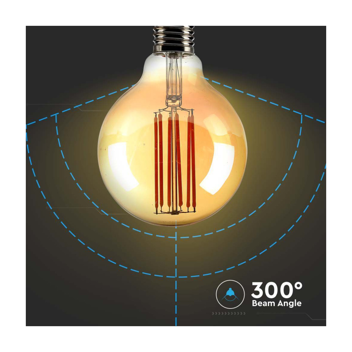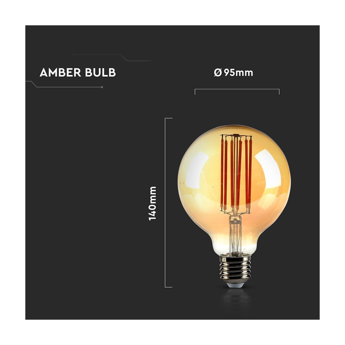 V-TAC Lampadina LED E27 7W 100LM/W G95 Filamento Ambrato 2200K