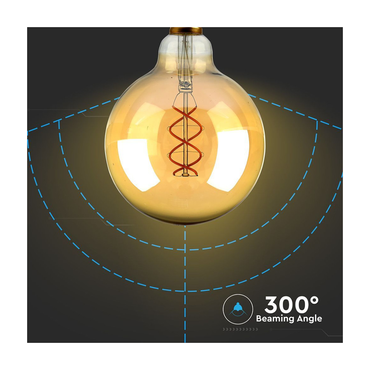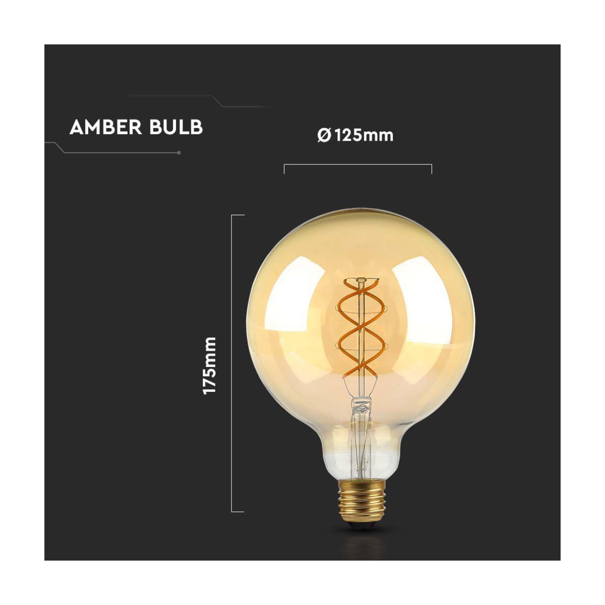 V-TAC Lampadina LED E27 5W G125 Filamento Ambrato 1800K