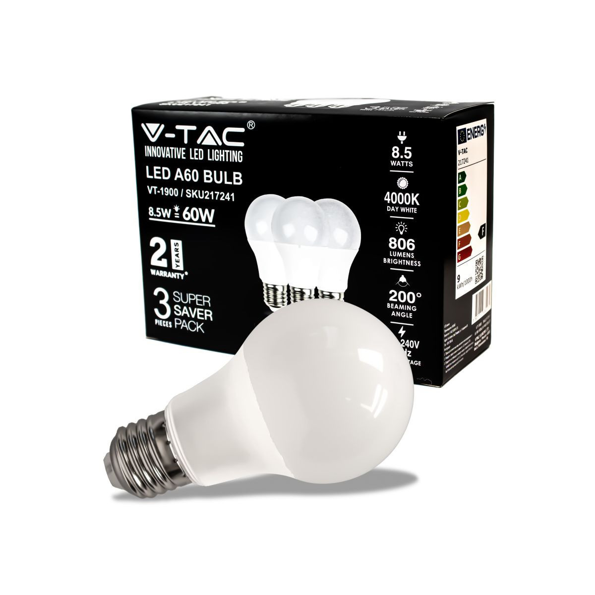 LED Bulb - 8.5W E27 A60 Thermoplastic 4000K 3PCS/PACK