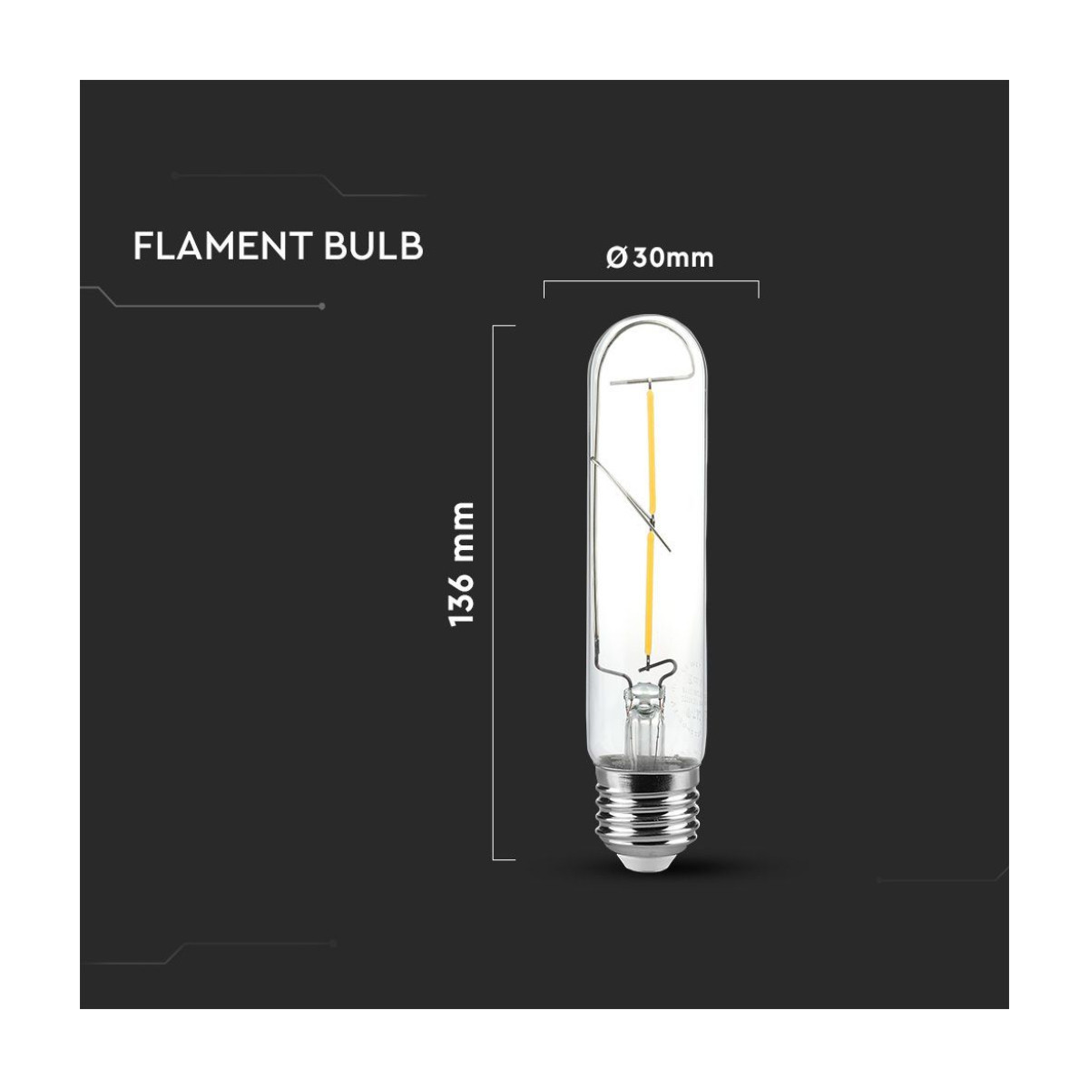 V-TAC Lampadina LED E27 2W 100LM/W T30 Filamento 3000K