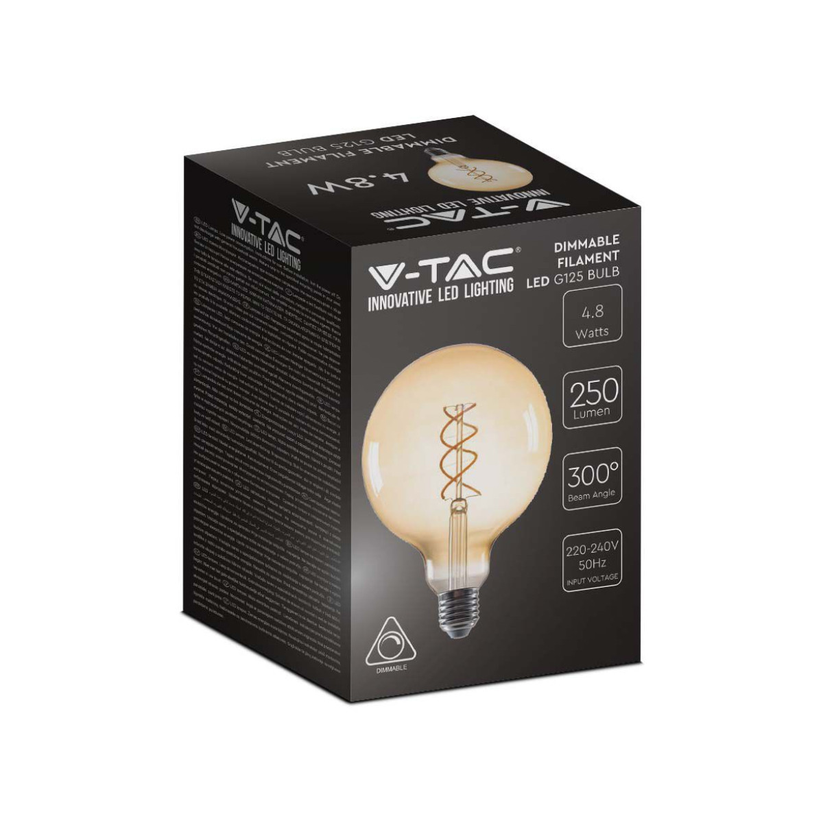 V-TAC Lampadina LED E27 5W G125 Filamento Ambrato 1800K Dimmerabile