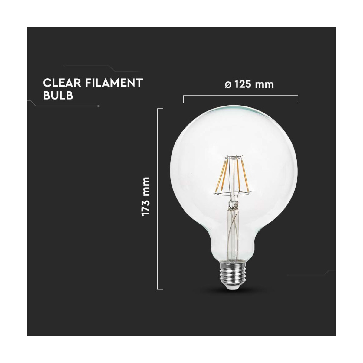 V-TAC Lampadina LED E27 12W G125 Filamento Trasparente 6500K