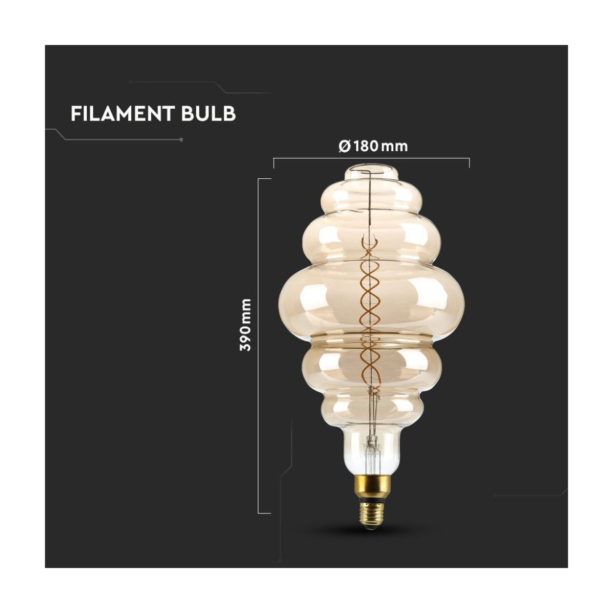 V-TAC Lampadina LED E27 8W S200 Doppio Filamento Oscurato 1800K Dimmerabile