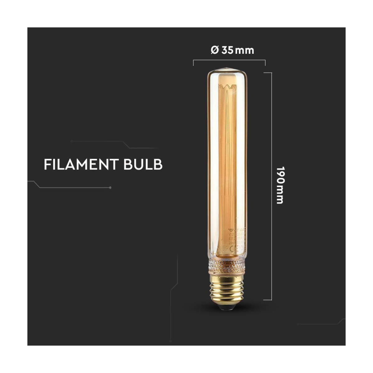 V-TAC Lampadina LED E27 2W T30 Candela Filamento Ambrato Art 1800K