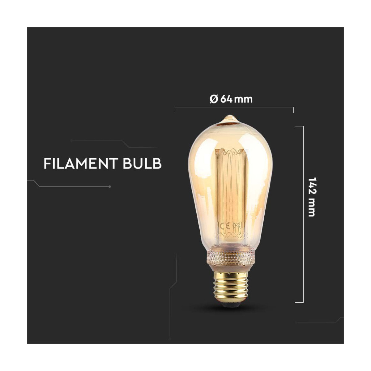 V-TAC Lampadina LED E27 4W ST64 Candela Filamento Ambrato Art 1800K