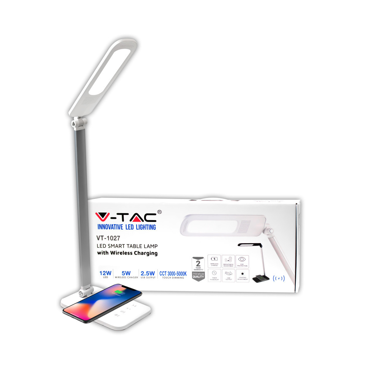 16W LED Table Lamp With Wireless Charger 3in1 White