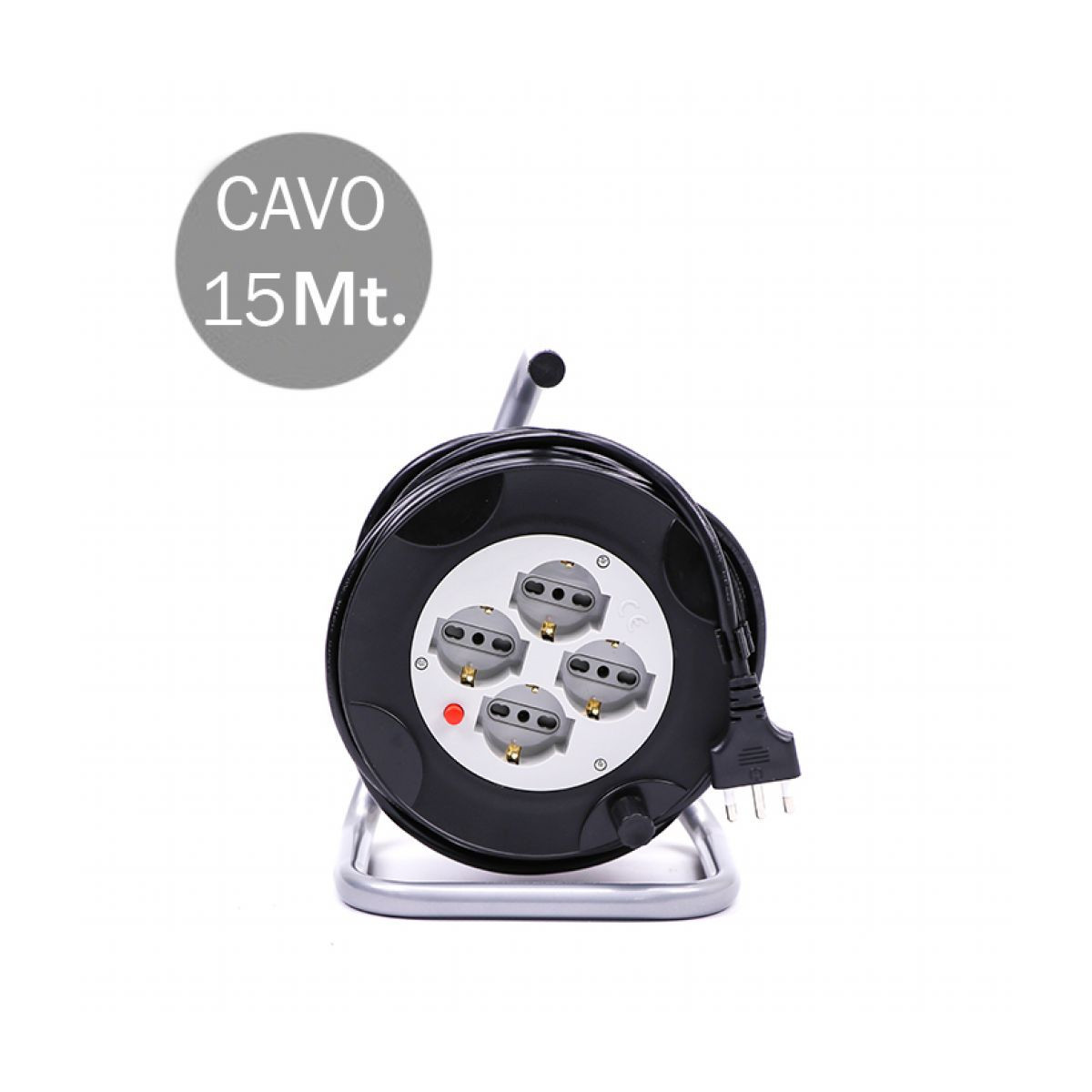 4 Prese Bipasso/Schuko Con Protezione Termica Ripristinabile Cavo Lunghezza 15m 3x1.5mm Con Spina Da 16A