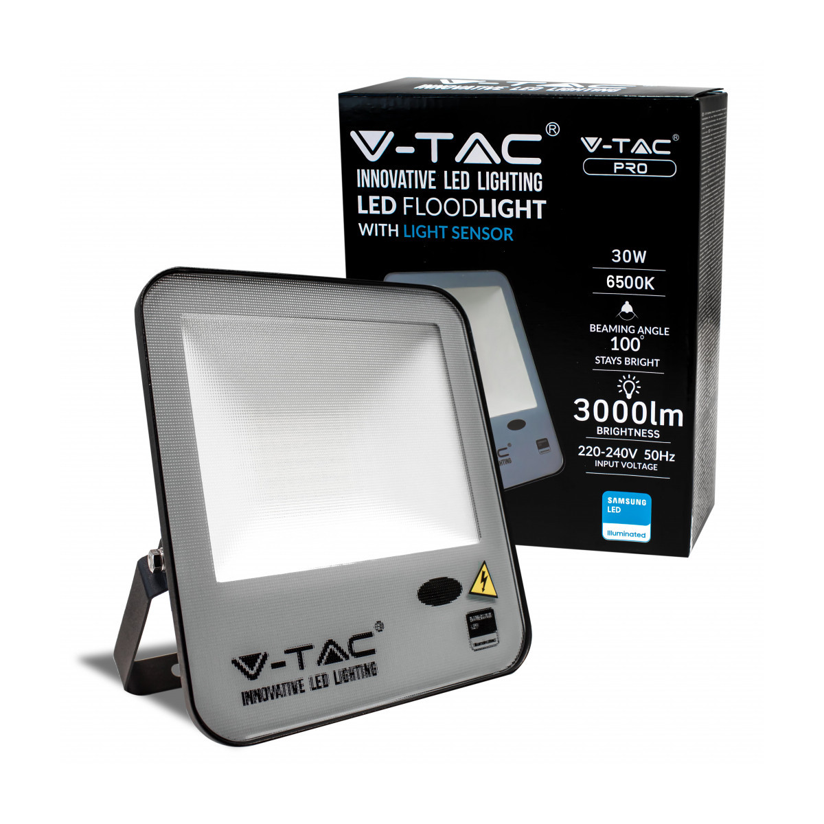 30W LED Sensor Day Light Floodlight SAMSUNG CHIP 100LM/W Black Body 6500K