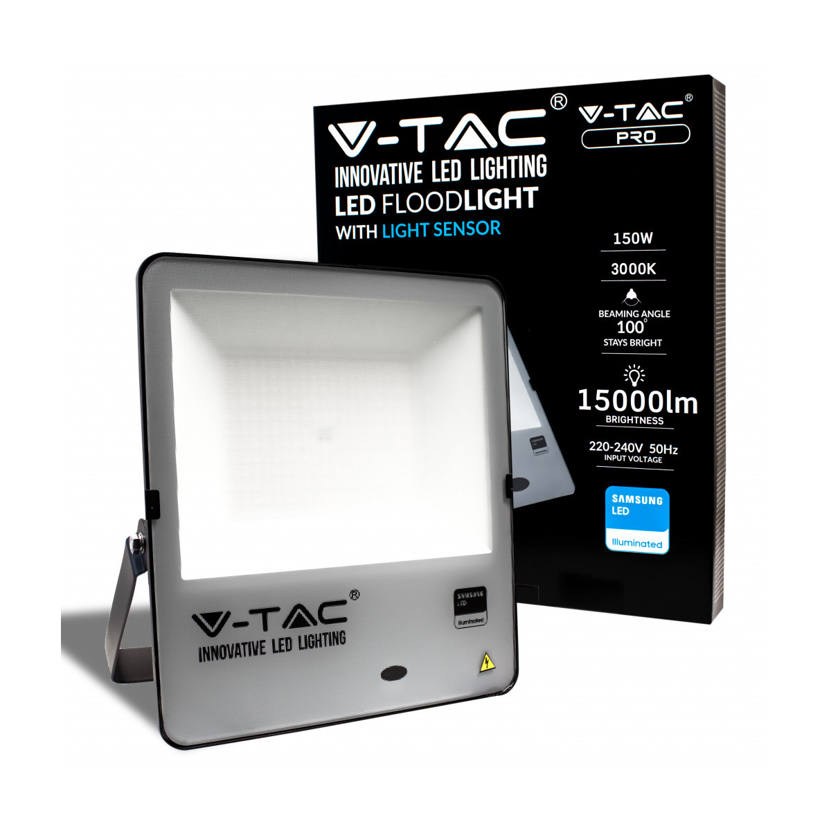 150W LED Sensor Day Light Floodlight SAMSUNG CHIP 100LM/W Black Body 3000K