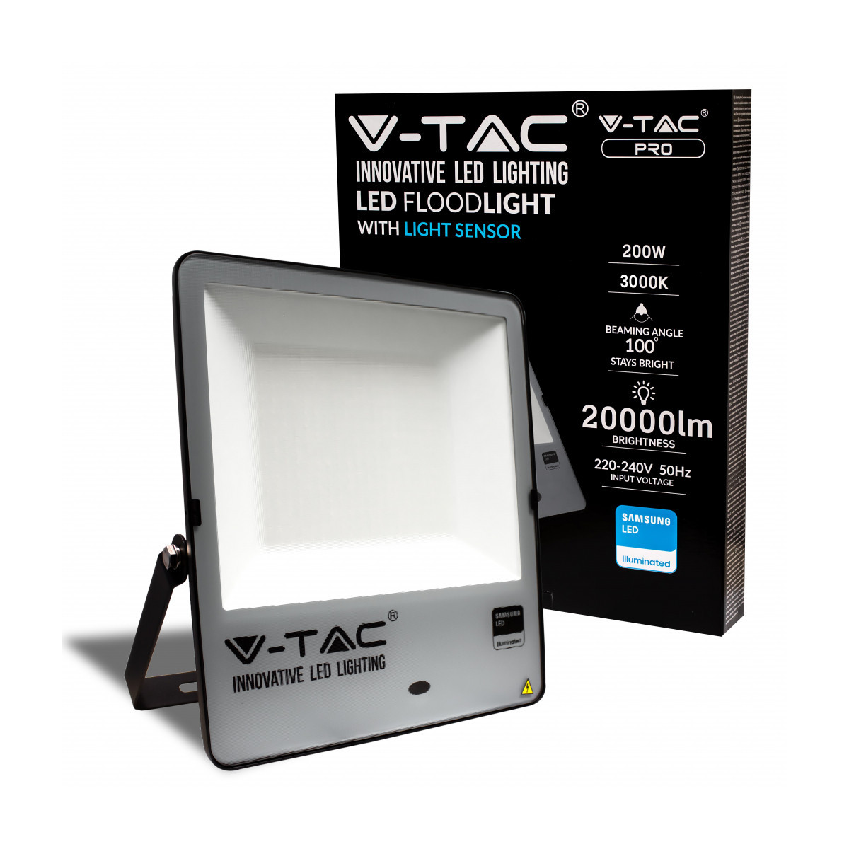 200W LED Sensor Day Light Floodlight SAMSUNG CHIP 100LM/W Black Body 3000K