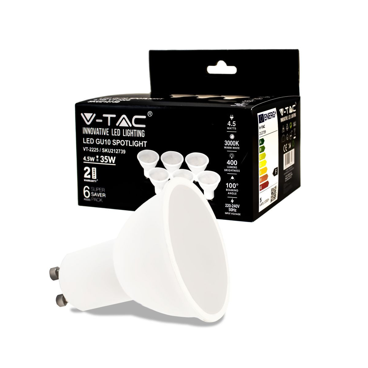 4.5W SMD WHITE PLASTIC SPOTLIGHT-MILKY COVER 3000K GU10 100`D 6PCS/PACK