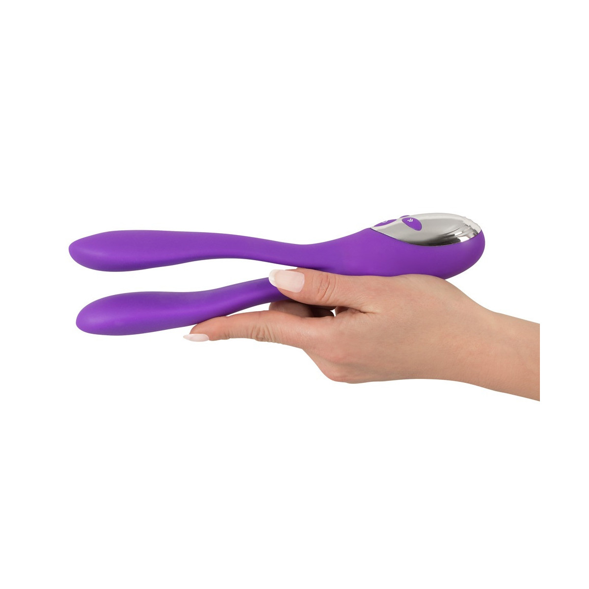Vibratore vibrante a due bracci che può coccolare vaginale e anale allo stesso tempo. Ma anche i capezzoli, il clitoride o i suoi testicoli, il doppio vibratore flessibile prende abilmente con 9 modi di vibrazione in 3 intensità ciascuno. Con 2 potenti motori, uno in ogni braccio flessibile. Incluso cavo di ricarica USB.
