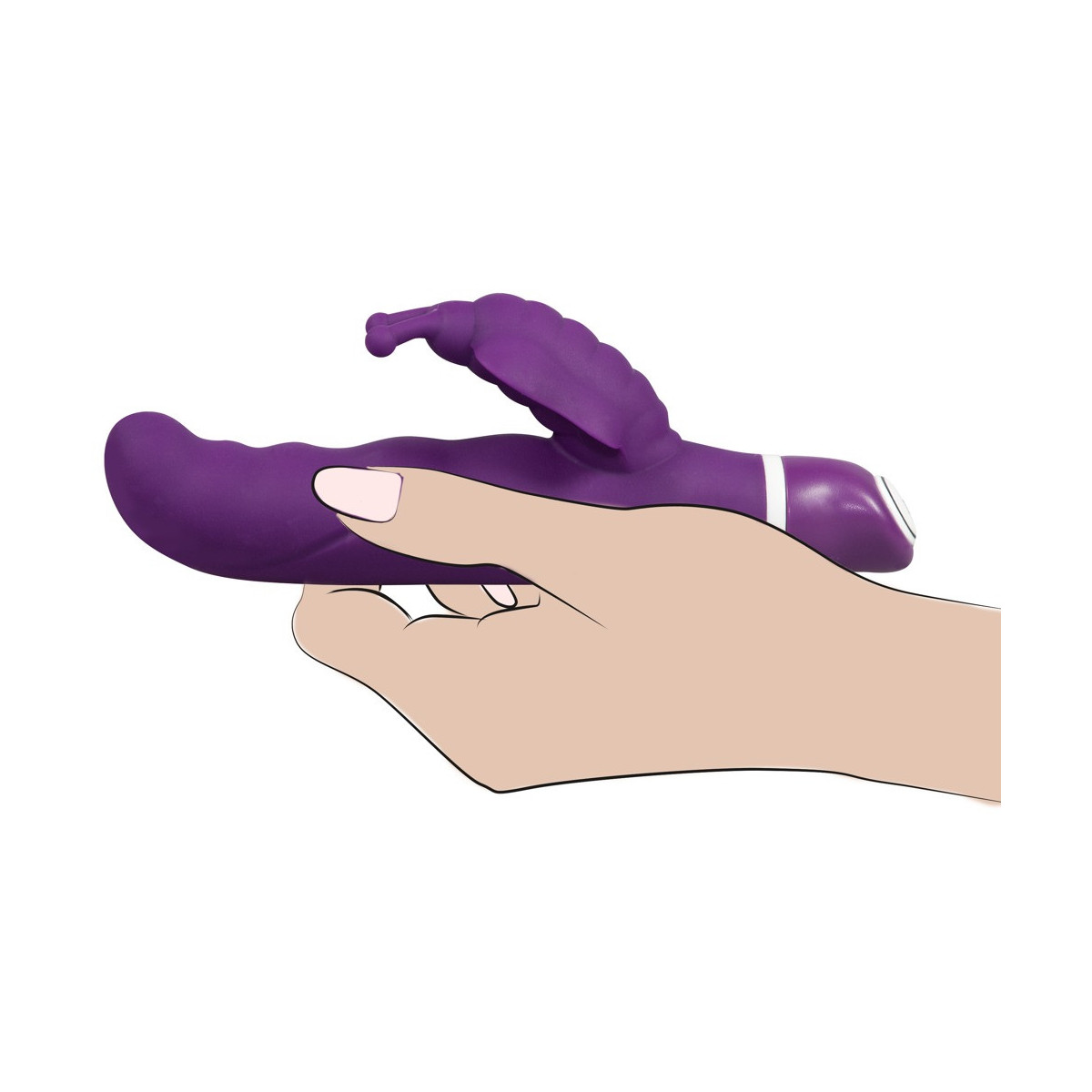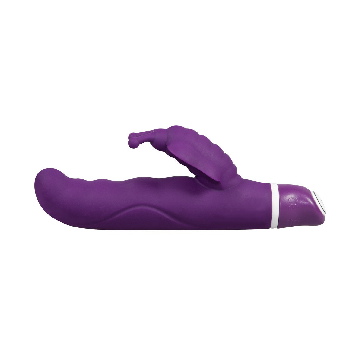 Vibratore con braccio di stimolazione del clitoride a farfalla. Con due motori: uno nella punta del punto G e uno nello stimolo del clitoride. I 7 modi di vibrazione possono essere facilmente controllati con la semplice pressione di un pulsante.