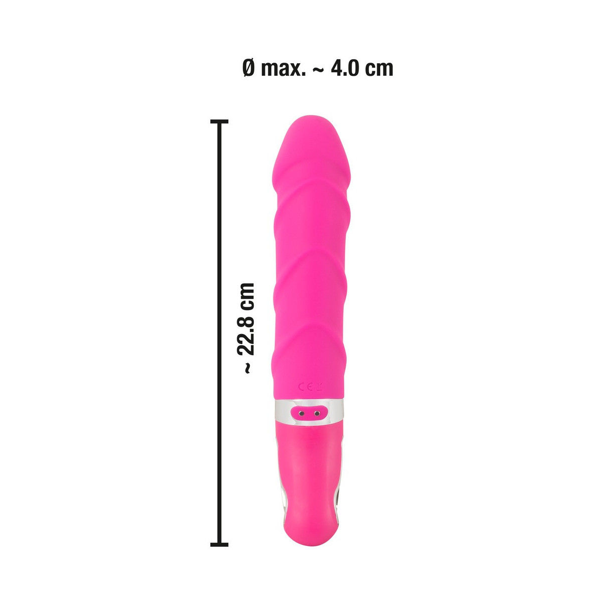 Lunghezza totale 22,8 cm, lunghezza d'inserimento 14 cm, Ø 4 cm. Silicone (silicone liquido), PU, ABS.