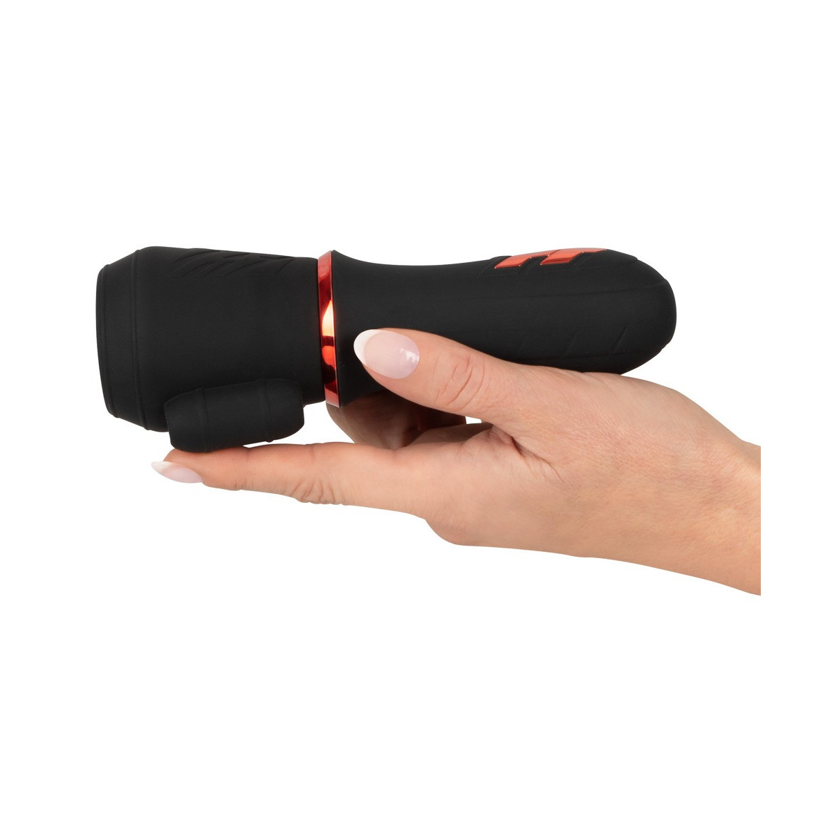 2 motori forniscono 10 modalità di vibrazione e quindi molta varietà. Possono essere comodamente controllati direttamente sul giocattolo al tocco di un pulsante. Il masturbatore è anche impermeabile per l'uso in aree bagnate.