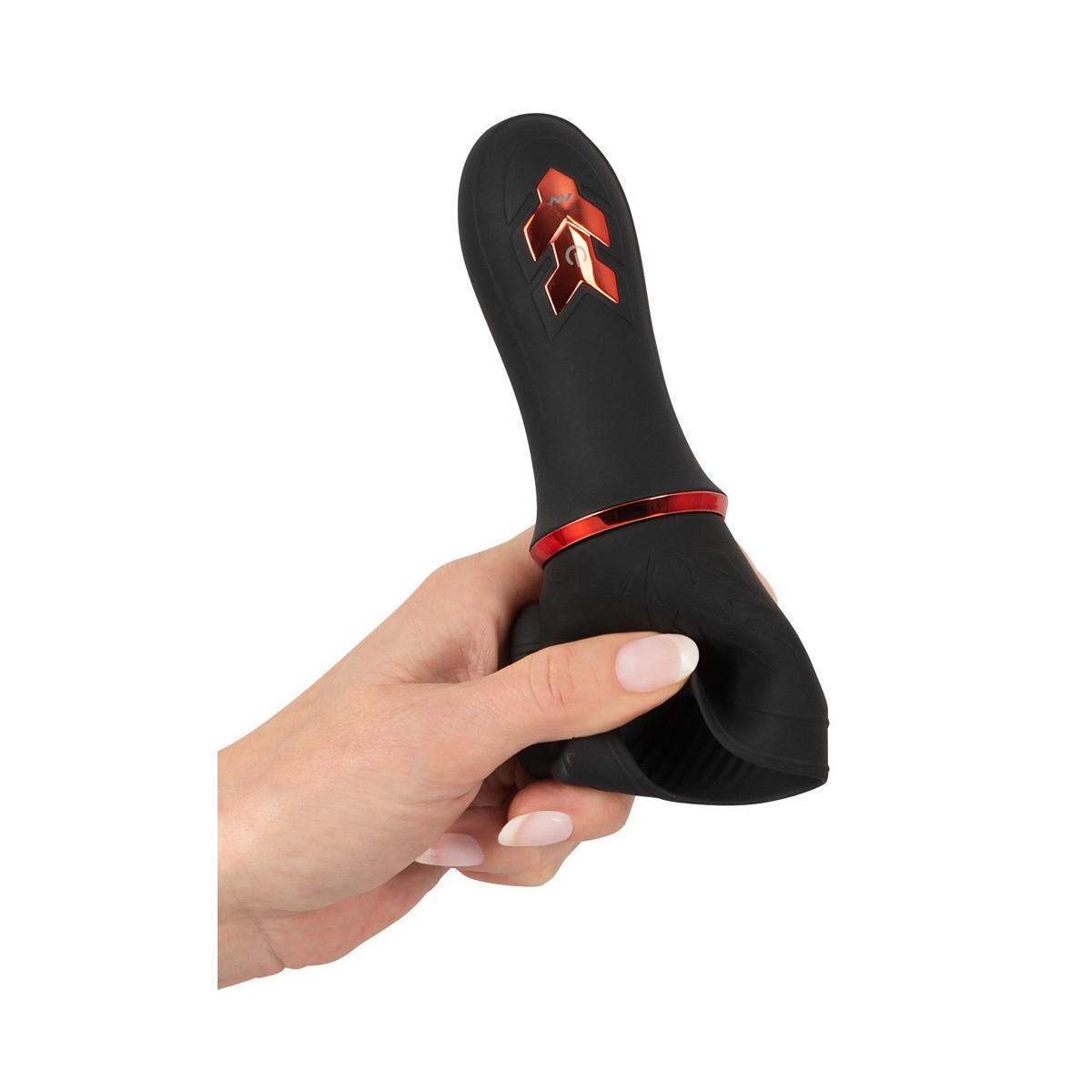 Comodissimo masturbatore compatto per il glande con 2 motori di Rebel, che coccola direttamente il glande e il frenulo del pene con vibrazioni formicolanti e innumerevoli nodi e scanalature morbide.