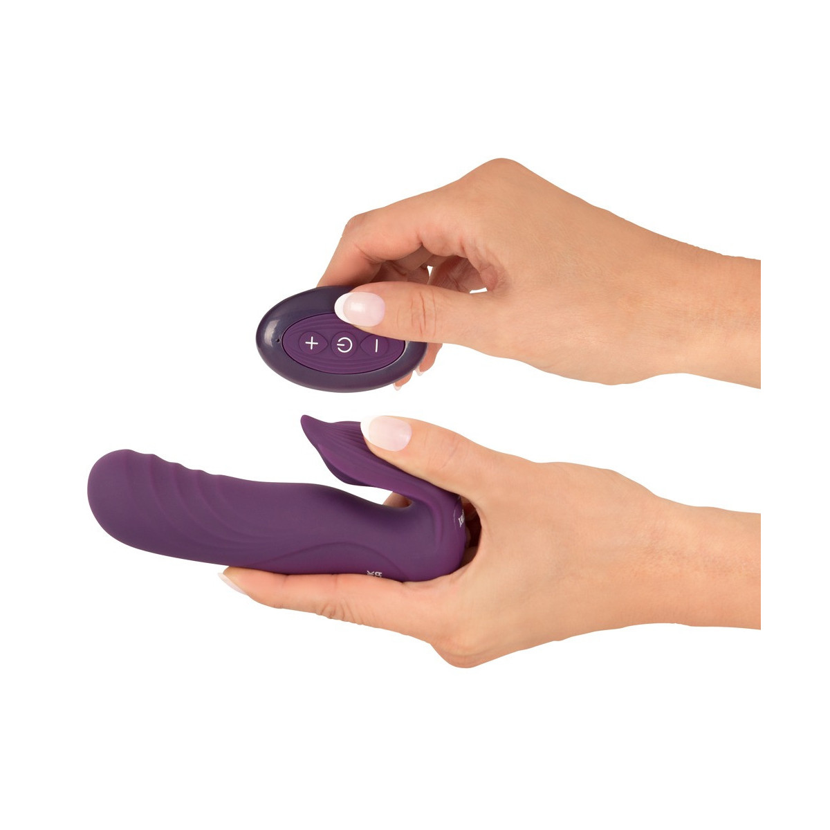 RC Shaking Panty Vibe di Javida con scanalature e onde di stimolazione, un albero paffuto che scuote e uno stimolatore clitorideo vibrante e flessibile. Indossato all'interno delle mutandine, il vibratore per mutandine dalla forma anatomica perfetta coccola la vagina e il clitoride allo stesso tempo - in modo completamente silenzioso e discreto, senza che nessuno se ne accorga!