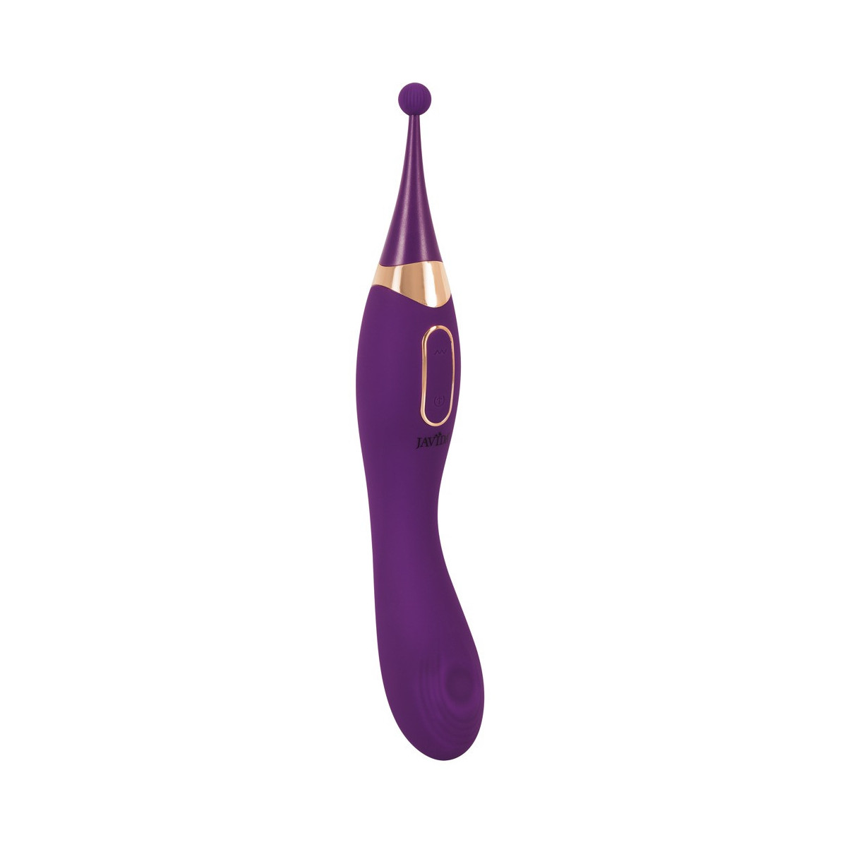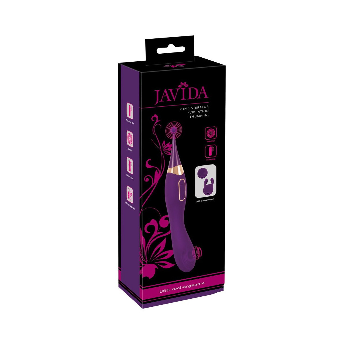 Vibratore 2 in 1 della Javida per la stimolazione mirata dei punti di piacere e per massaggi completi o intimi. Un lato con testa a sfera piccola e due attacchi intercambiabili, così come la vibrazione formicolante in 10 modalità, l'altro lato con albero di riempimento e la funzione di palpitazione-pulsazione in 10 modalità. Entrambe le funzioni possono essere controllate separatamente e comodamente al tocco di un pulsante. Rivestito dappertutto con una consistenza morbida al tatto, il vibratore fornisce una sensazione molto piacevole sulla pelle durante il gioco e le coccole. Ricaricabile - cavo di ricarica USB incluso.