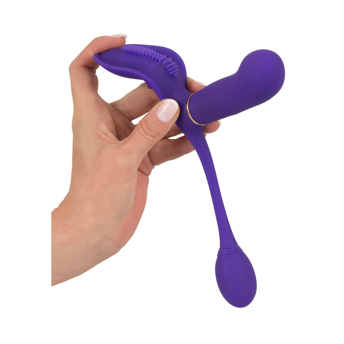 Lunghezza totale 24,5 cm, lunghezza d'inserimento vibratore 9,5 cm, lunghezza d'inserimento vibro sfera 4,7 cm, Ø 2,9 cm. Silicone, PU, ABS.