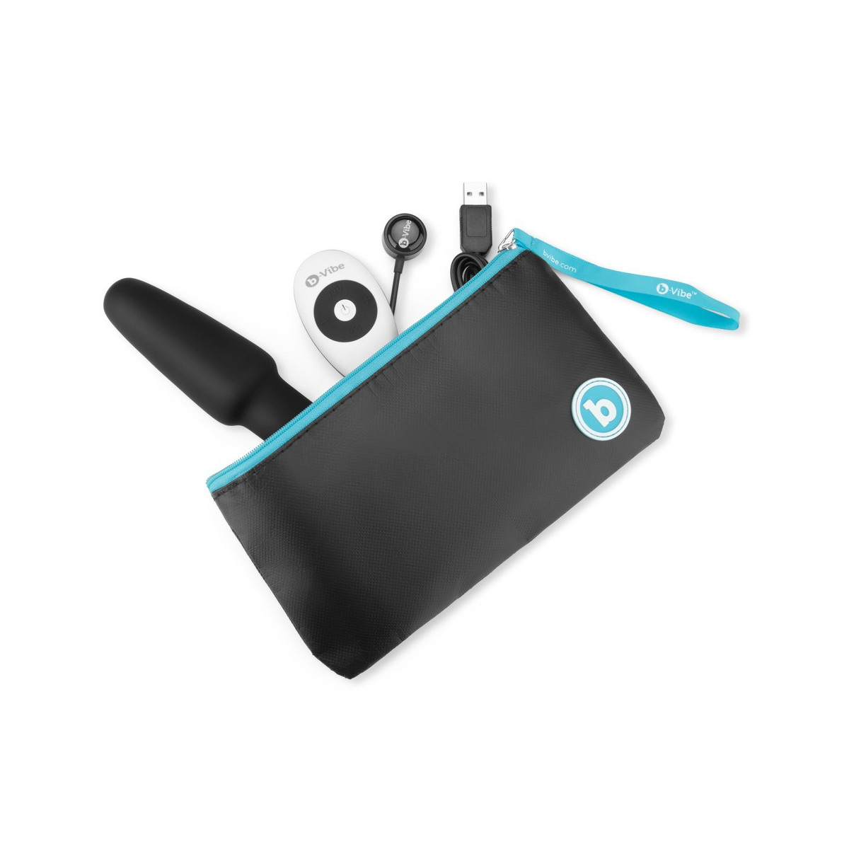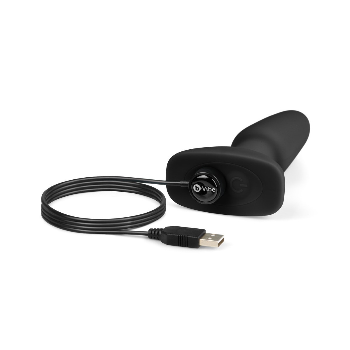 Rimming anale plug di b-vibe con radiocomando per regolare la vibrazione e le perle di rotazione nell'albero, ma può anche essere regolato direttamente sul plug. 6 modalità di vibrazione, 7 modalità di rotazione e 6 livelli di velocità possono essere combinati. Con superficie soft-touch e supporto. Include il cavo di ricarica USB Click 'n' Charge e la custodia rigida per la conservazione.