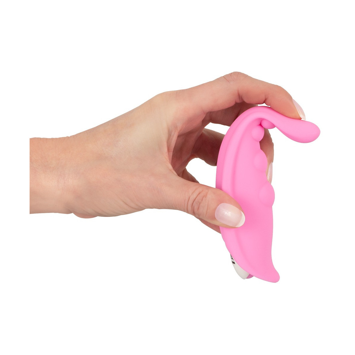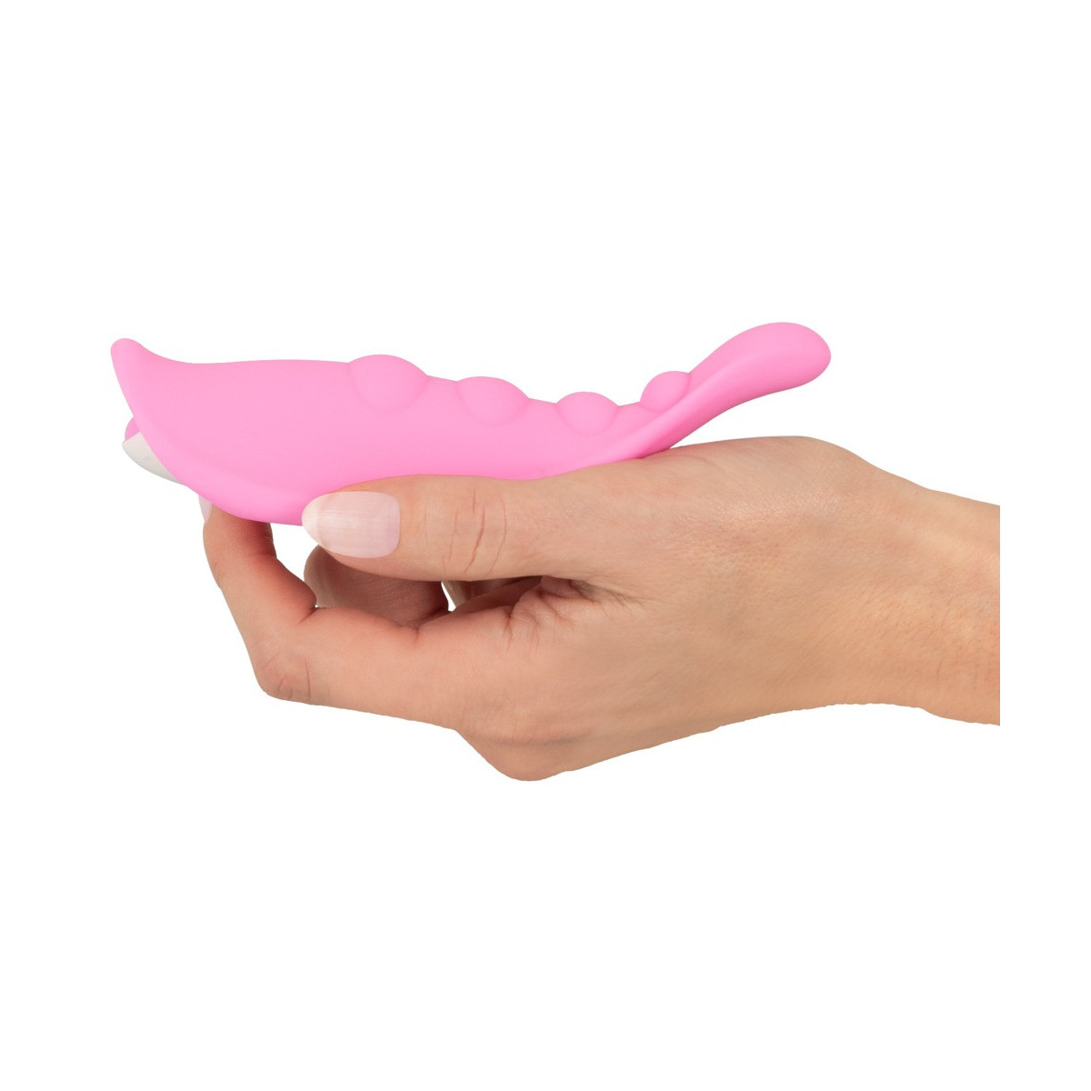 Il vibratore Swing lay-on di Sweet Smile, dalla forma ergonomica, è perfetto per stimolare la zona intima femminile: l'ispessimento con i nodi spessi al centro si trova all'ingresso del tunnel vaginale, le labbra incorniciano il giocattolo e la sua punta stretta si posiziona direttamente sul clitoride. 7 modalità di vibrazione: 3 pulsanti, 1 crescente, 3 velocità. Basta inserire la mutandina come una fodera e ogni passo è accompagnato da una delicata frizione e da una stimolazione mirata. Tenere premuto il pulsante per 2-3 secondi per spegnerlo. Batterie incluse. Lunghezza totale circa 14 cm, Ø circa 1-4 cm. Silicone, ABS