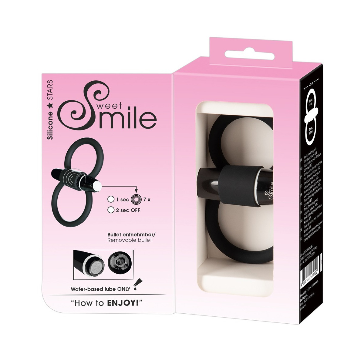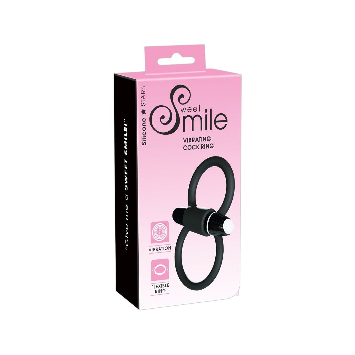 L'aderenza del cockring vibrante di Sweet Smile e le 7 modalità di vibrazione del vibrobullet rimovibile assicurano erezioni durature e puro piacere.